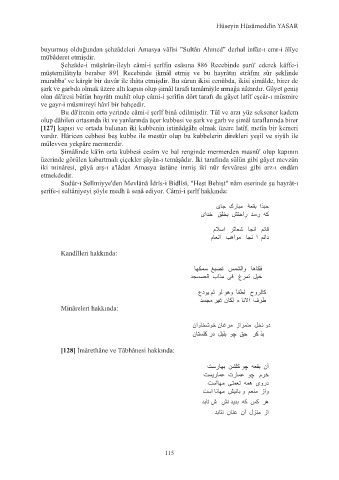 [127] kapısı ve ortada bulunan iki kubbenin istinâdgâhı olmak üzere latîf, metîn bir kemeri