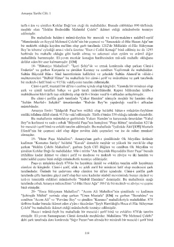 18- "Hâtuniye Mahallesi": "İçeri Şehir"de ve ırmak kenârında olup şarkan Câmi-i