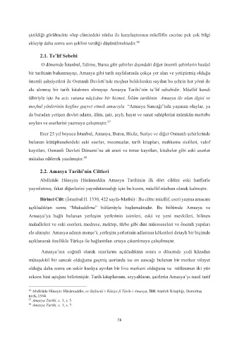 ele alınmış bir tarih kitabının olmayışı Amasya Tarihi’nin te’lif sebebidir. Müellif kendi