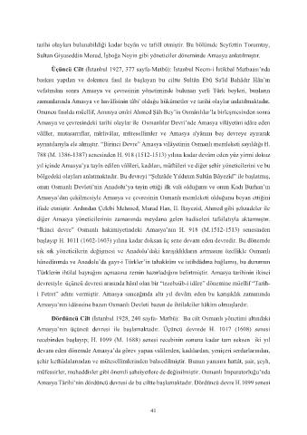 ayrıntılarıyla ele almıştır. “Birinci Devre” Amasya vilâyetinin Osmanlı memleketi sayıldığı H.