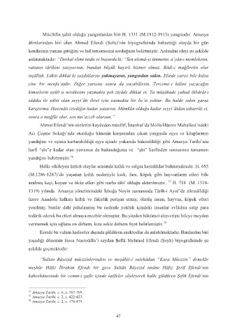 Müellifin şahit olduğu yangınlardan biri H. 1331 (M.1912-1913) yangınıdır. Amasya