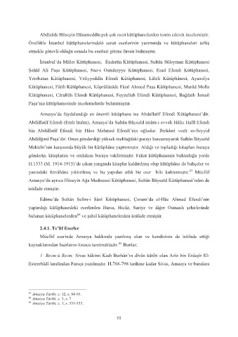 Müellif eserinde Amasya hakkında yazılmış olan ve kendisinin de istifade ettiği