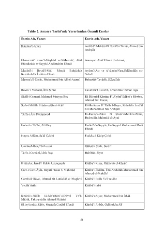 Tablo 2. Amasya Tarihi’nde Yararlanılan Önemli Eserler