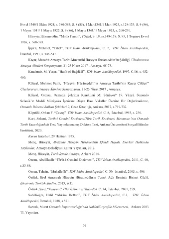 Köksal, Mehmet Fatih, “Hüseyin Hüsâmeddîn’in Amasya Tarihi’nin Kayıp Ciltleri”