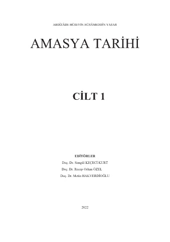 Amasya Tarihi 1-4. Cilt Hüseyin Hüsâmeddîn YASAR ABDÎZÂDE HÜSEYİN HÜSÂMEDDÎN YASAR AMASYA TARİHİ CİLT 1 EDİTÖRLER Doç. Dr. Songül KEÇECİ KURT Doç. Dr. Recep Orhan ÖZEL Doç. Dr. Metin HAKVERDİOĞLU 2022