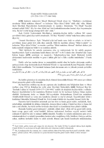imiş. Ba’de’l-vefât hesap olunup târih vâki’ oldu.”