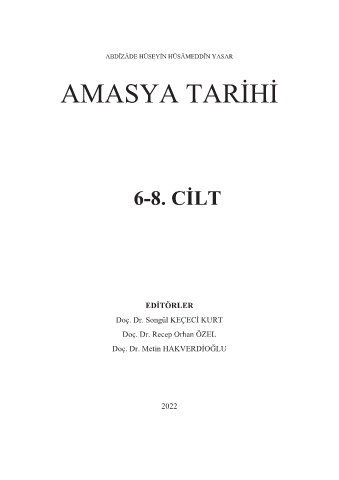 Amasya Tarihi 6-8. Cilt Hüseyin Hüsâmeddîn YASAR ABDÎZÂDE HÜSEYİN HÜSÂMEDDÎN YASAR AMASYA TARİHİ 6-8. CİLT EDİTÖRLER Doç. Dr. Songül KEÇECİ KURT Doç. Dr. Recep Orhan ÖZEL Doç. Dr. Metin HAKVERDİOĞLU 2022 1
