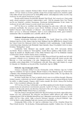 Amasya ulemâsından Sarâczâde es-Seyyid el-Hâc İsmâil Efendi bin el-Hâc Hâfız