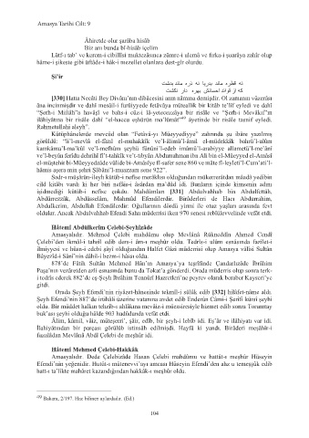 Rahmetullahi aleyh”. Amasya’da ulemâdan ve hâssaten Allâme Ürgüblü el-Hâc Ahmed Efendi’den ikmâl-i tahsîl
