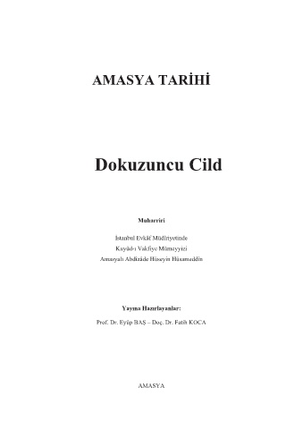 Amasya Tarihi 9-12. Cilt Hüseyin Hüsâmeddîn YASAR Amasya Tarihi 9-12. Cilt Hüseyin Hüsâmeddîn YASAR