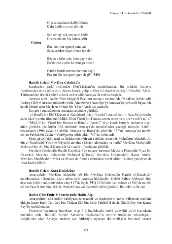 Amasyalıdır. Mevlâna Alâeddîn Ali bin Mevlâna Celaleddîn Hattâb el-Karahisârî