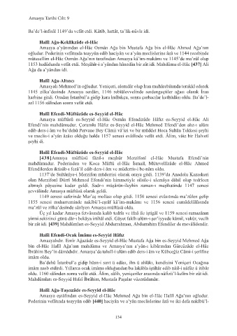 bir zât idi. [439] Mahdûmları es-Seyyid Abdurrahman, Abdurrahim Efendiler de mevâlîdendir. Fakat ba’zı akrânın hasûdane istirkâbından muğber olup 1127’de Amasya’yı terk ederek