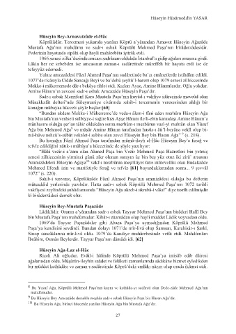 9 Bu Hüseyin Bey Amcazâde demekle meşhûr sadr-ı esbak Hüseyin Paşa bin Hasan Ağa’dır.