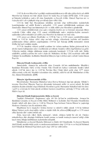 ederek 1143’de ders-i âm ve 1165’de Pervâne Bey Câmii kürsî şeyhi olup 1177 senesi
