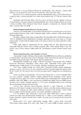 Amasyalıdır. Dergâh-ı âlî kapıcı-başılarından olup [180] Hâfız Seyyid Paşa’nın kethüdâsı