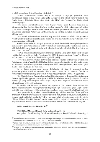 bu fırkanın yaşaması imkânı olmadığını takdîr edemedi. 29 “Meşâyîhnâme-i İslâm”da müşârün ileyhin Amasyalı olduğu yazılıdır. “el-Ikdü’l-Manzûm fî Ulemâi’r-Rûm”da