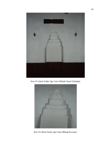 83 Foto.53: Kilari Selim Ağa Cami Mihrabı Genel Görünüşü Foto.54: Kilari Selim Ağa Cami Mihrap Kavsarası