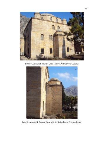 90 Foto.57: Amasya II. Bayezıd Cami Mihrabı Beden Duvar Çıkıntısı Foto.58: Amasya II. Bayezıd Cami Mihrabı Beden Duvar Çıkıntısı Detayı