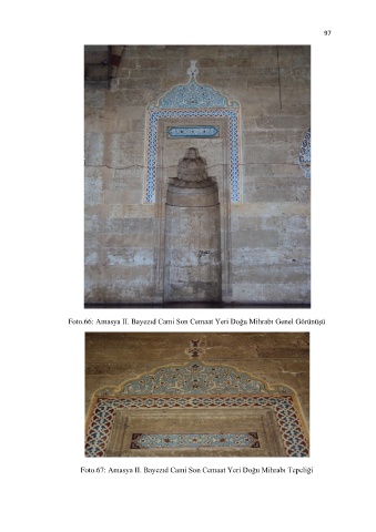 97 Foto.66: Amasya II. Bayezıd Cami Son Cemaat Yeri Doğu Mihrabı Genel Görünüşü Foto.67: Amasya II. Bayezıd Cami Son Cemaat Yeri Doğu Mihrabı Tepeliği