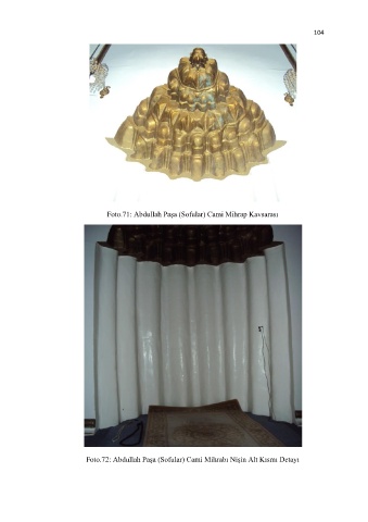 104 Foto.71: Abdullah Paşa (Sofular) Cami Mihrap Kavsarası Foto.72: Abdullah Paşa (Sofular) Cami Mihrabı Nişin Alt Kısmı Detayı