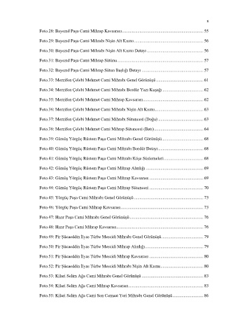 Foto.53: Kilari Selim Ağa Cami Mihrabı Genel Görünüşü ........................................................ 83