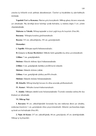 III. Köşelik: Mihrap köşeliği kavsara ile silme arasında şekillenmektedir.