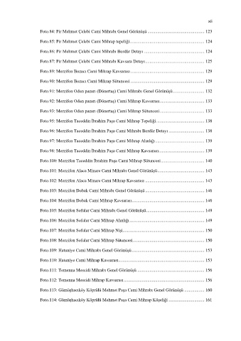 Foto.109: Hatuniye Cami Mihrabı Genel Görünüşü ................................................................. 153