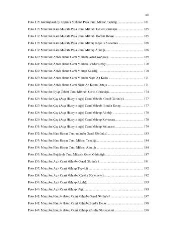Foto.125: Merzifon Eyüp Çelebi Cami Mihrabı Genel Görünüşü ............................................ 174