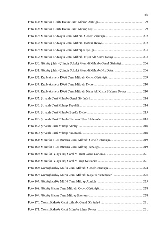 Foto.152: Kızılcakışlacık Köyü Cami Mihrabı Genel Görünüşü .............................................. 209