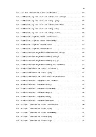 Foto.172: Yukarı Türbe Mescidi Mihrabı Genel Görünüşü ...................................................... 234