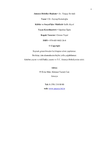 Kitabın yayım ve telif hakkı yazara ve T.C. Amasya Belediyesine aittir.