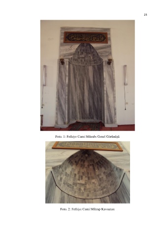23 Foto. 1: Fethiye Cami Mihrabı Genel Görünüşü Foto. 2: Fethiye Cami Mihrap Kavsarası