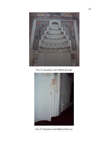 44 Foto.18: Saraçhane Cami Mihrabı Köşeliği Foto.19: Saraçhane Cami Mihrabı Sütuncesi