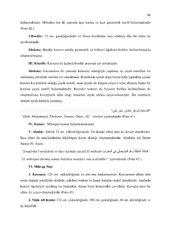 “Allah, Muhammed, Ebubekir, Osman, Ömer, Ali” isimleri yazmaktadır (Foto.41).