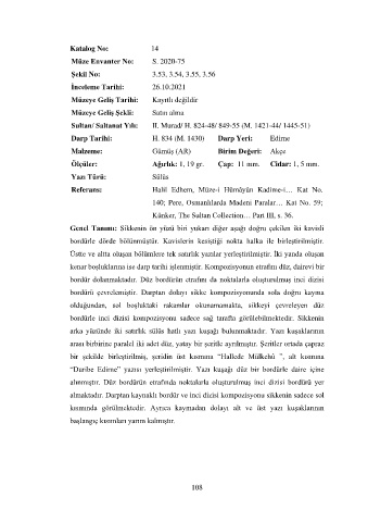 Darp Tarihi: H. 834 (M. 1430) Darp Yeri: Edirne