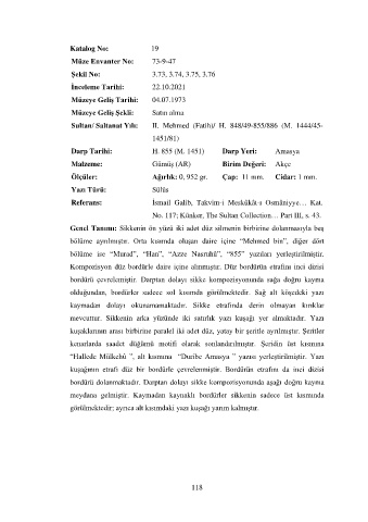 mevcuttur. Sikkenin arka yüzünde iki satırlık yazı kuşağı yer almaktadır. Yazı