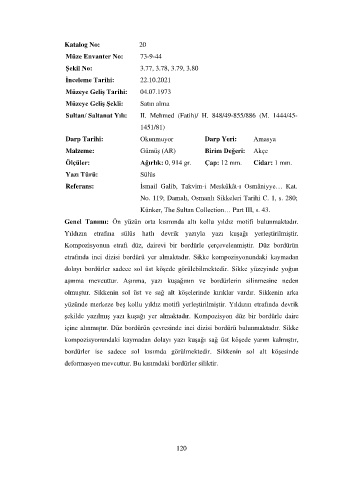 No. 119; Damalı, Osmanlı Sikkeleri Tarihi C. 1, s. 280;
