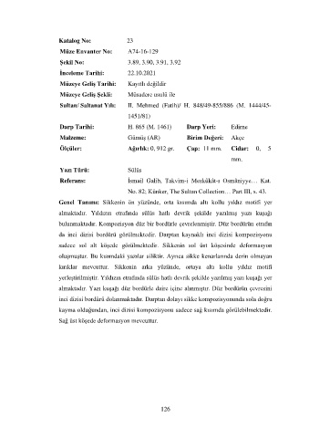 Darp Tarihi: H. 865 (M. 1461) Darp Yeri: Edirne