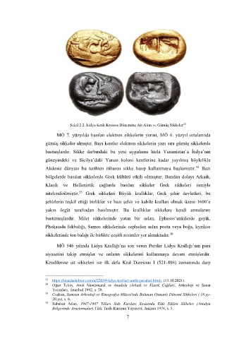 Şekil 2.2. Lidya Kralı Kroisos Dönemine Ait Altın ve Gümüş Sikkeler