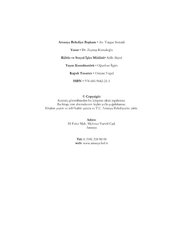 Kitabın yayım ve telif hakkı yazara ve T.C. Amasya Belediyesine aittir.