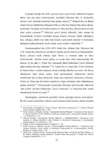 161 Hüseyin Kayhan, “Eşrefoğulları Beyliği Sikkeleri ve Düşündürdükleri” Uluslararası Orta
