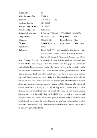 Genel Tanımı: Sikkenin ön yüzünde, iki satır halinde yazılmış sülüs hatlı yazı